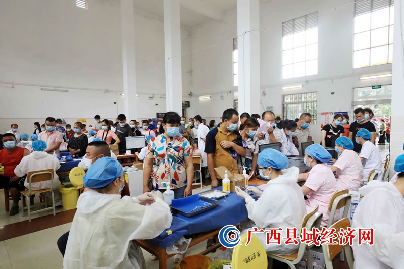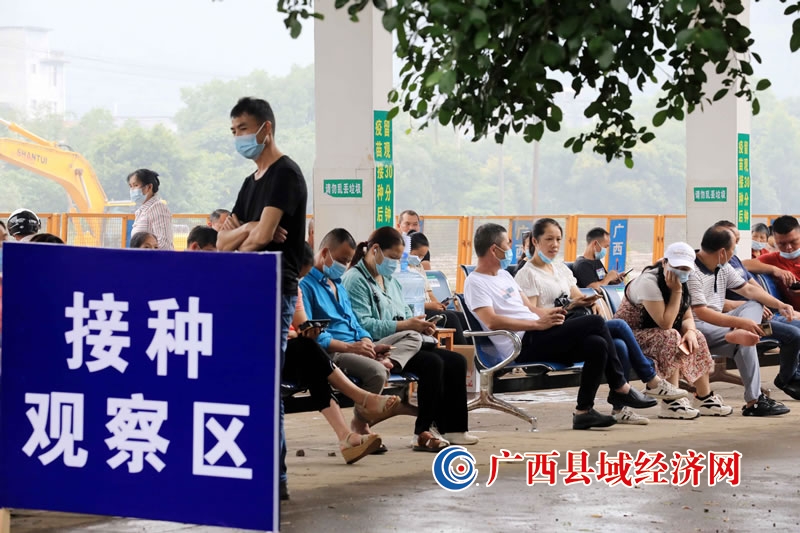 6月3日,在广西柳州市融安县大型临时接种点,市民在排队接种新冠肺炎疫苗。(谭凯兴 摄)