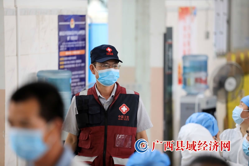 6月3日,在广西柳州市融安县大型临时接种点,工作人员在维护接种秩序。(谭凯兴 摄)