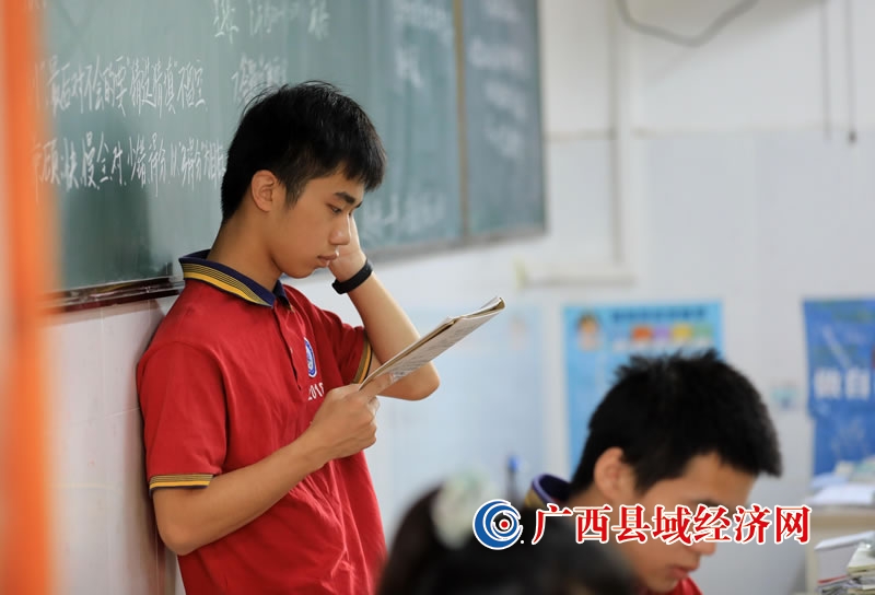 6月7日,在广西柳州市融安县高中,一名考生在教室复习功课,做考前最后冲刺。(谭凯兴 摄)
