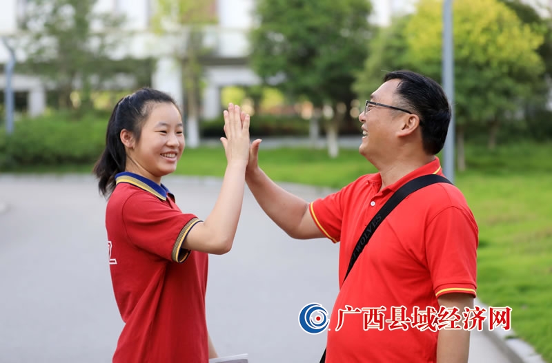 6月7日,在广西柳州市融安县高中,一名老师为学生击掌加油。(谭凯兴 摄)
