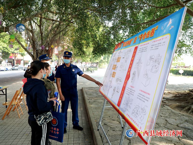 活动现场,宁明县消防救援大队工作人员通过设立“119”消防宣传点、展示消防宣传展版、发放消防宣传单等形式普及消防安全知识,为过往居民讲解火灾起因、燃烧条件、防灭火基本原理,并演示了灭火器的构造、使用方法以及等注意事项,教育引导居民在日常工作中如何正确用电、用火、用气,生活中如何正确拨打119火警电话,如何做好火灾隐患排查和遇到火灾时如何安全逃生。