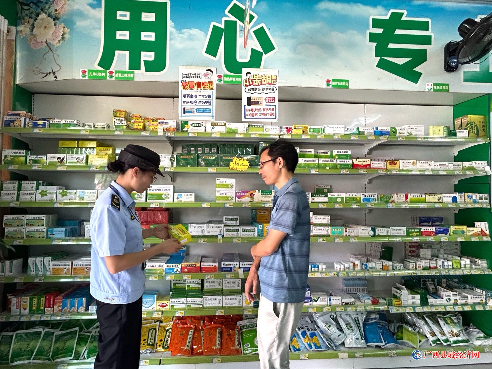 图为执法人员检查儿童药品。