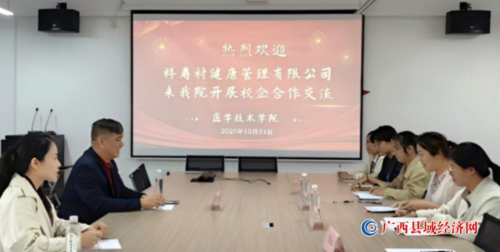 为积极响应“健康中国2030”战略部署,深化教育链、人才链与产业链、创新链的深度融合,10月31日,梧州医学高等专科学校医学技术学院与祥寿村(广西南宁)健康管理有限公司联合举办校企合作交流会。会上,双方围绕产教融合模式创新、高素质医学技术人才培养及大健康技术联合研发等核心议题深入研讨,达成多项合作共识。学院领导及公司负责人张建祥等校企代表共同出席会议。