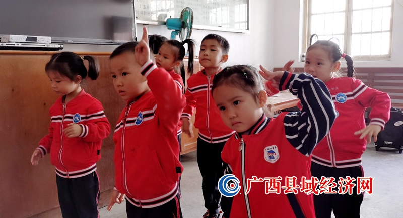 10月24日,广西河池市金城江区五圩镇中心幼儿园的孩子们在表演手语操。