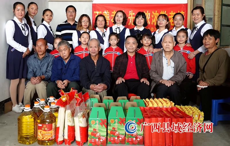 10月24日,广西河池市金城江区五圩镇中心幼儿园的师生们携带米、油、面条、蛋糕等慰问品,一起来到五圩镇敬老院,开展“百善孝为先,浓浓敬老情”的主题教育活动,让孩子们从小做起,弘扬中华民族尊老敬老的传统美德,培养孩子们的社会责任心和尊老爱老的优秀品质,让幼儿的社会实践能力得到提高。