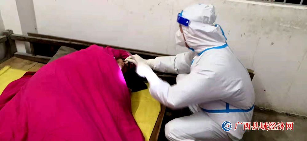 图六、宁明县东安乡医护人员上门为卧病在床群众进行核酸检测。 (陈璐琪 摄)