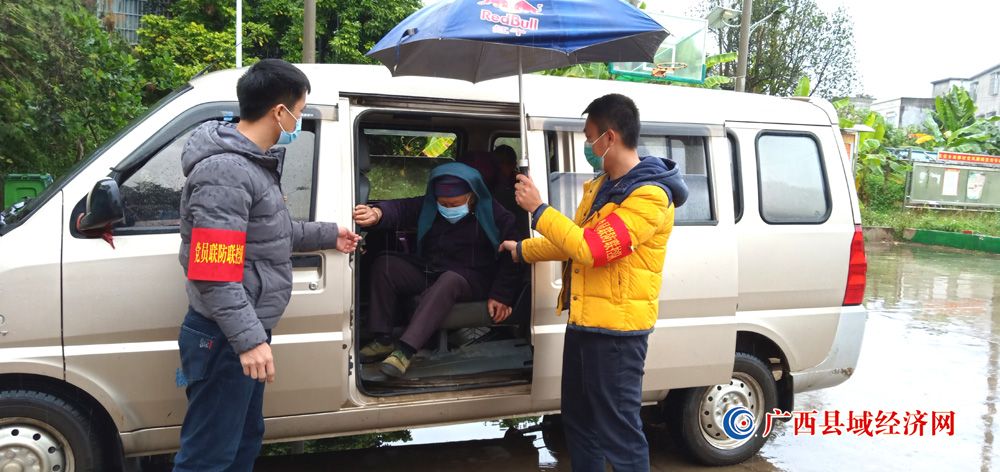 图四、宁明县东安乡党员干部上门接送行动不便老人进行核酸检测。 (陈璐琪 摄)