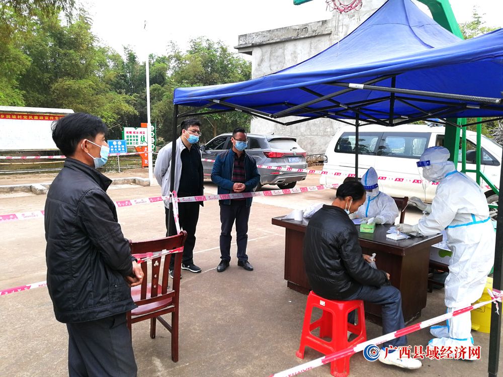 图三、宁明县东安乡党员干部组织村民群众开展核酸检测。(廖莉 摄)