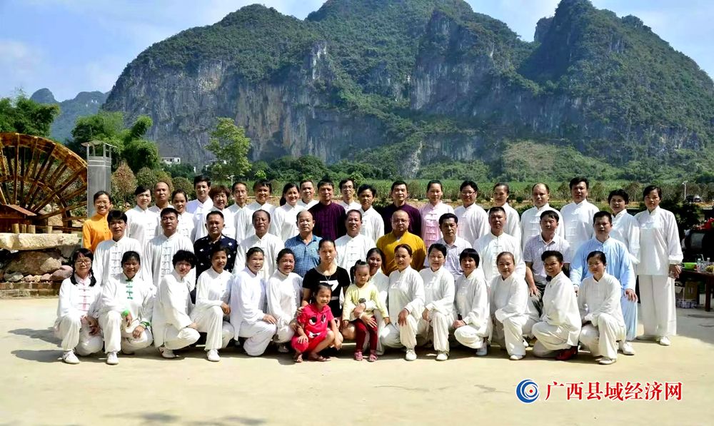 图二、宁明县花山武术同心文化体育队队员外出传习花山壮拳时合影。 (许云萍 摄)