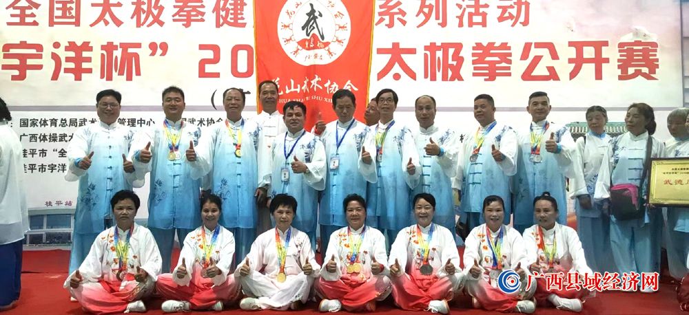 图一、宁明县花山武术同心文化体育队队员外出参加比赛时合影。 (许云萍 摄)