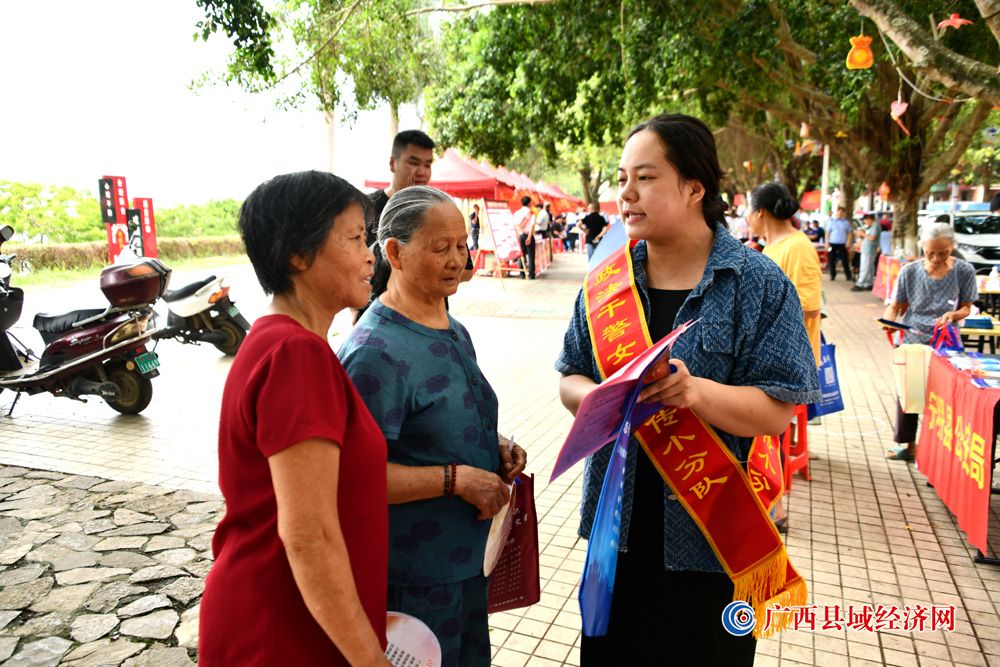 图三、6月16日,广西宁明县政法干警女子宣传小分队队员在县城江滨北路2023年“安全生产月”宣传活动中向群众进行“扫黑除”恶常态化工作宣传及讲解安全生产相关知识。 (周贻刚 摄)