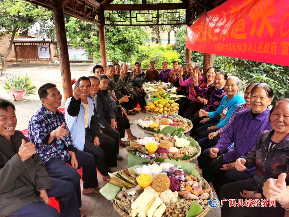 图五、宁明县峙浪乡青年理事会组织老年人共享簸箕宴共庆重阳节。 (黄德军 摄)