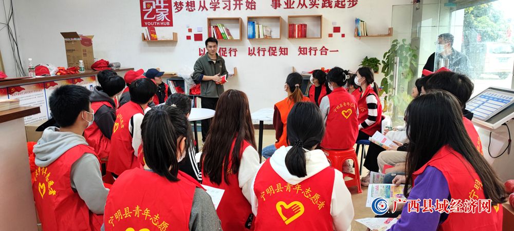 图一、宁明县峙浪乡党委政府、青年理事会组织返乡大学生到乡政务中心开展岗位实践活动。 (黄德军 摄)