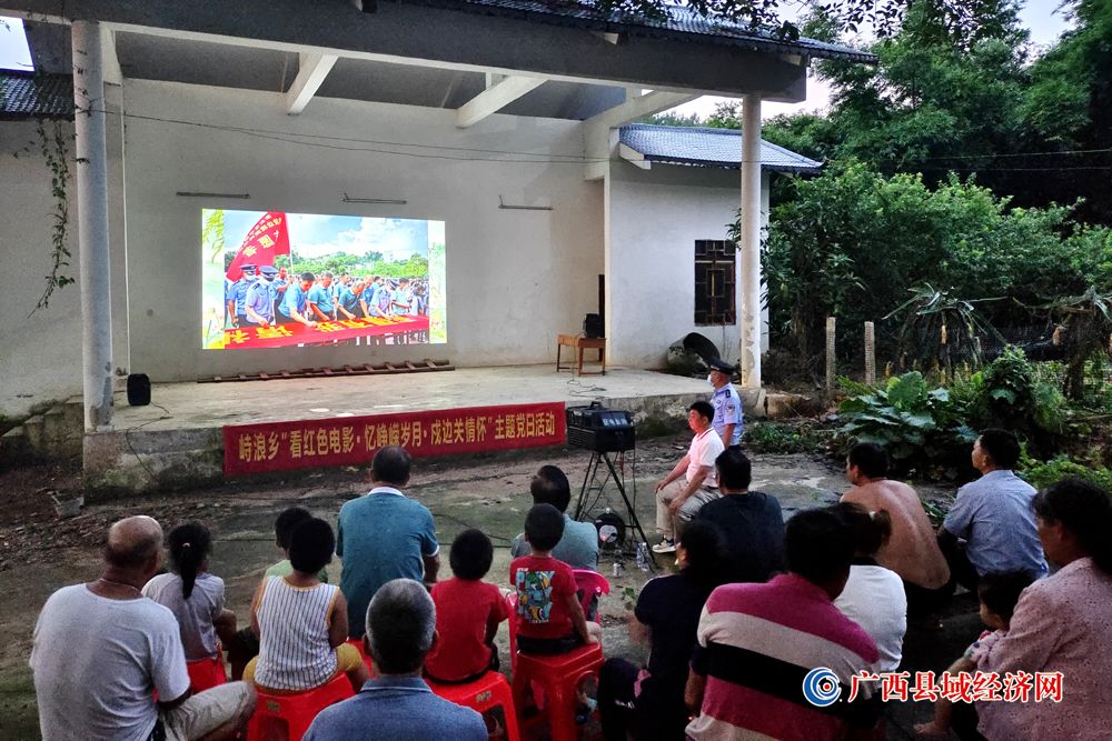 图四、宁明县峙浪乡党委、青年理事会组织党员群众观看爱国主义电影开展主题党日活动。 (黄德军 摄)