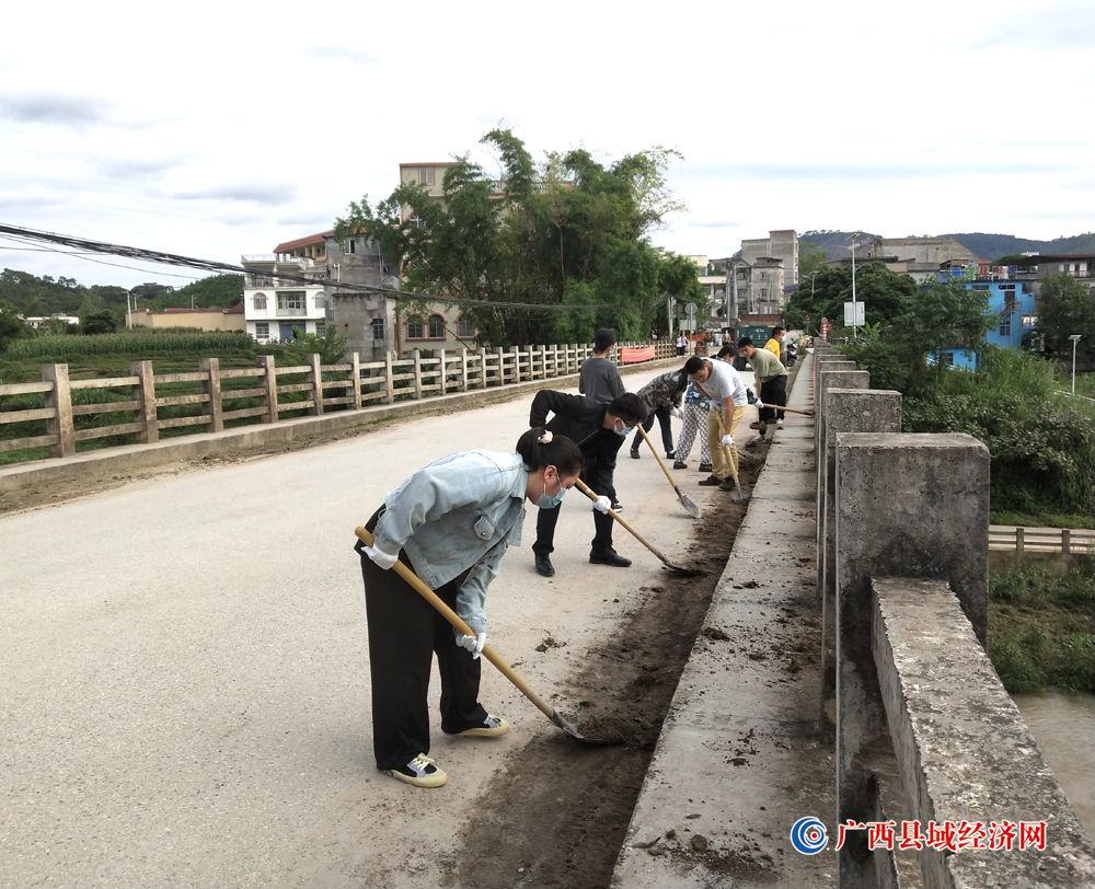 图七、宁明县峙浪乡青年理事会成员积极参加清理道路淤泥义务劳动。 (黄德军 摄)