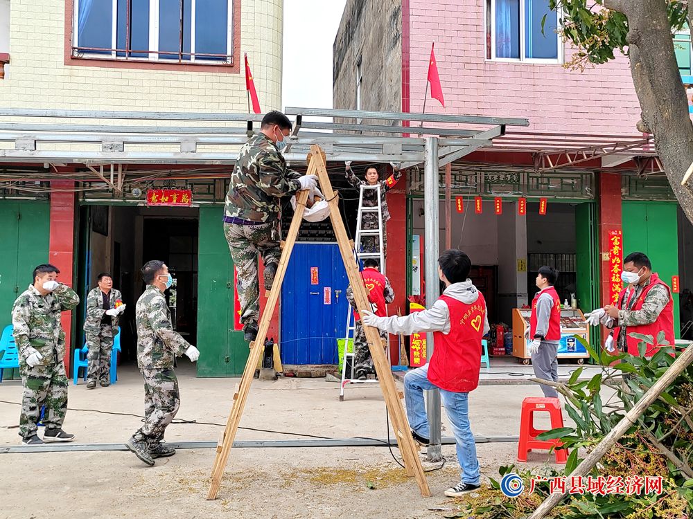 图六、宁明县峙浪乡青年理事会成员积极参与“三清三拆”村容环境综合整治工作。 (黄德军 摄)