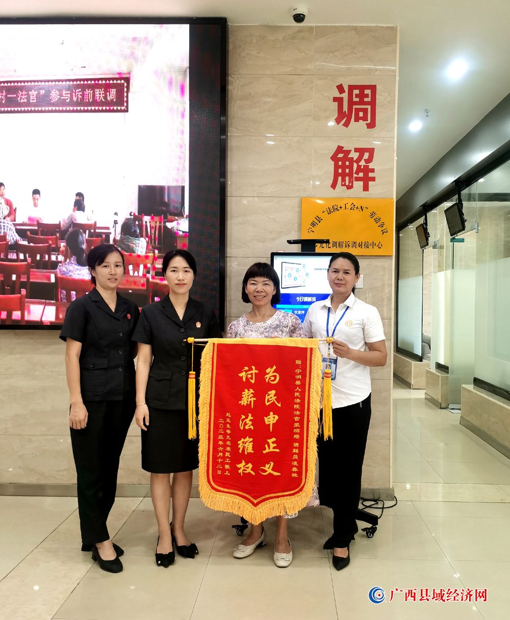 “我一定要当面感谢宁明县人民法院的法官和调解员,我更要看看我们法院的庭长长什么样!”2023年6月29日下午,广西宁明县人民法院诉调中心充满了欢声笑语,农民工韦阿姐带着一面鲜红的锦旗来到宁明县人民法院,代表全体工友向该院诉调中心的法官和调解员表示真挚地感谢。这是宁明县人民法院“法院 工会 n”劳动争议多元化解诉调中心挂牌以来收到的又一面农民工赠送的锦旗,这也是宁明县人民法院以人民为中心,为民办实事办好事的又一次真实体现。
