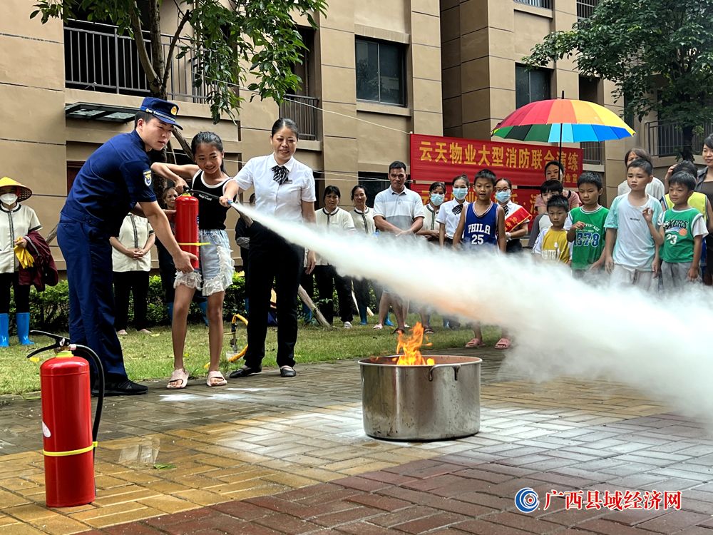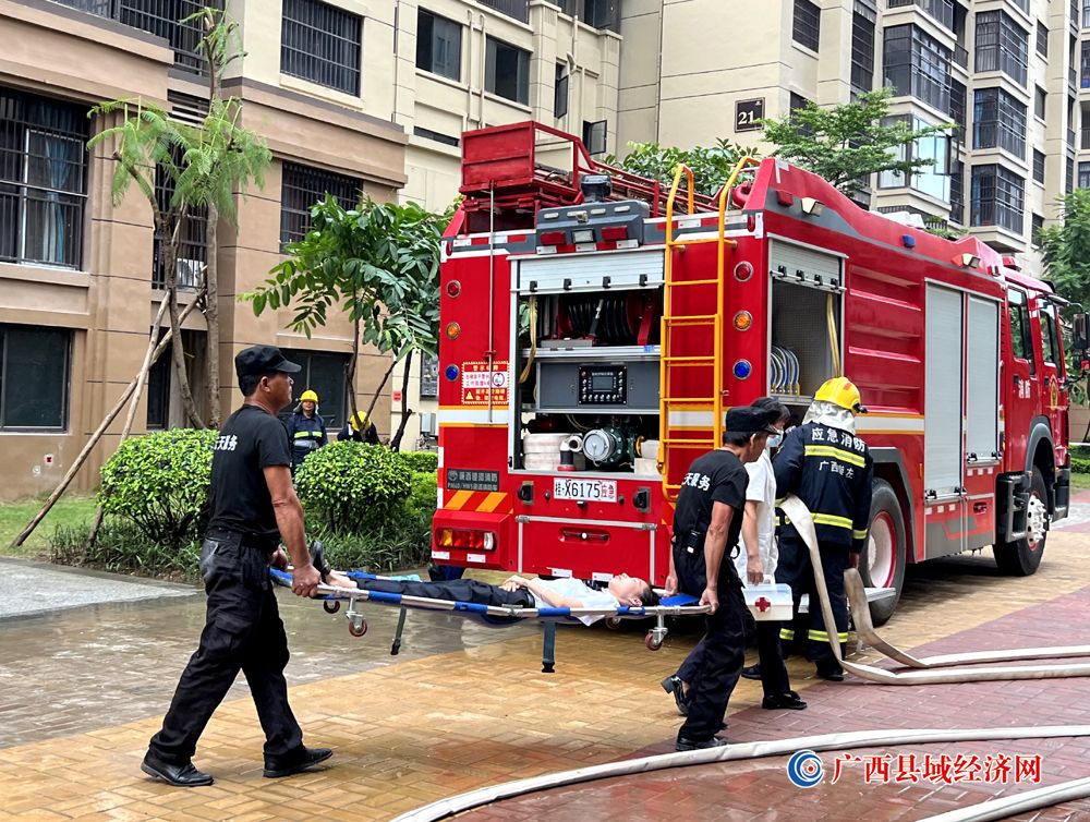 图二、8月6日,广西宁明县消防救援大队联合广西云天物业管理有限公司宁明分公司开展消防安全逃生演练。(黄庆兰 摄)