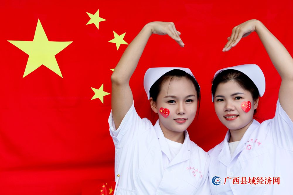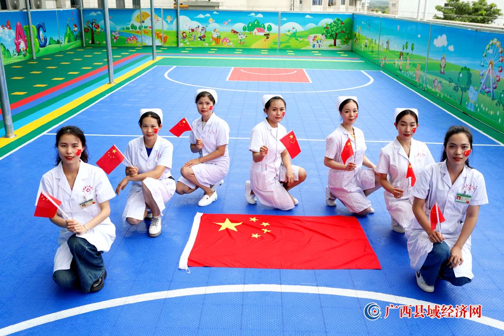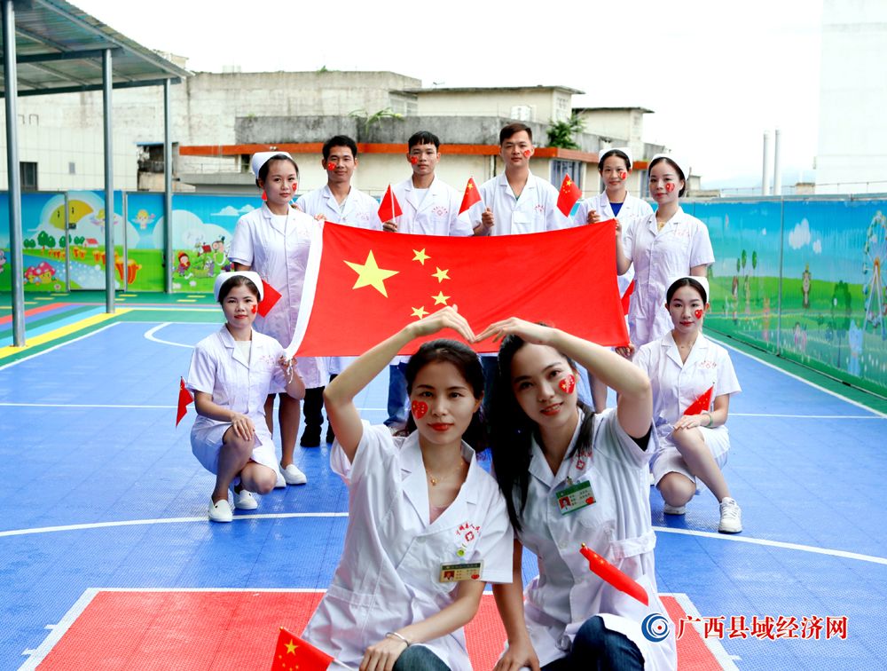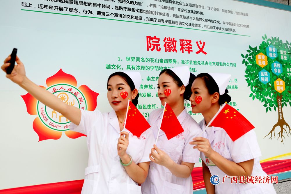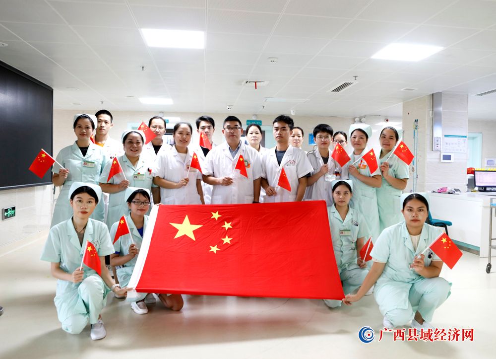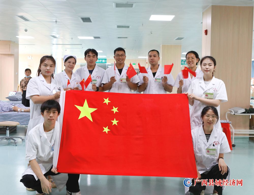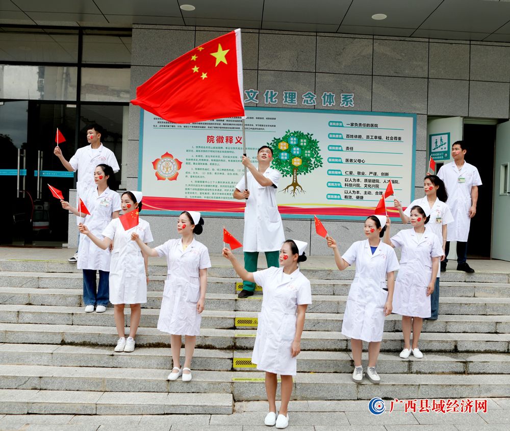 图九、宁明县人民医院医护人员积极参加“我和国旗合个影”主题活动庆祝祖国74周年华诞。(农艳蓉 摄)