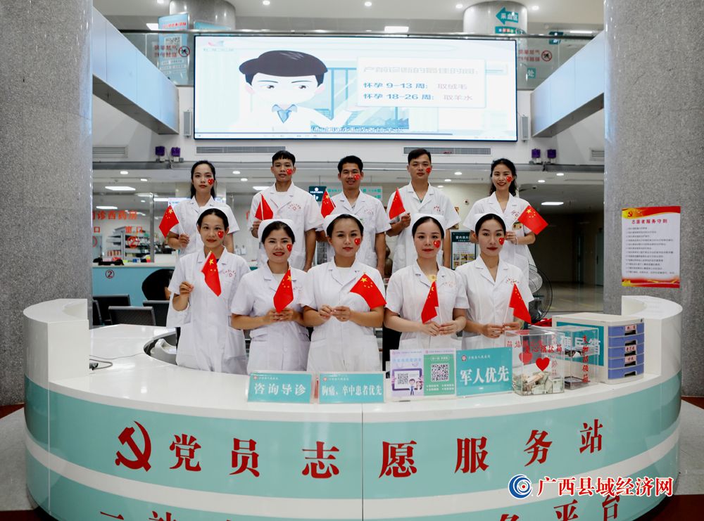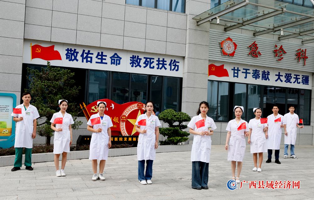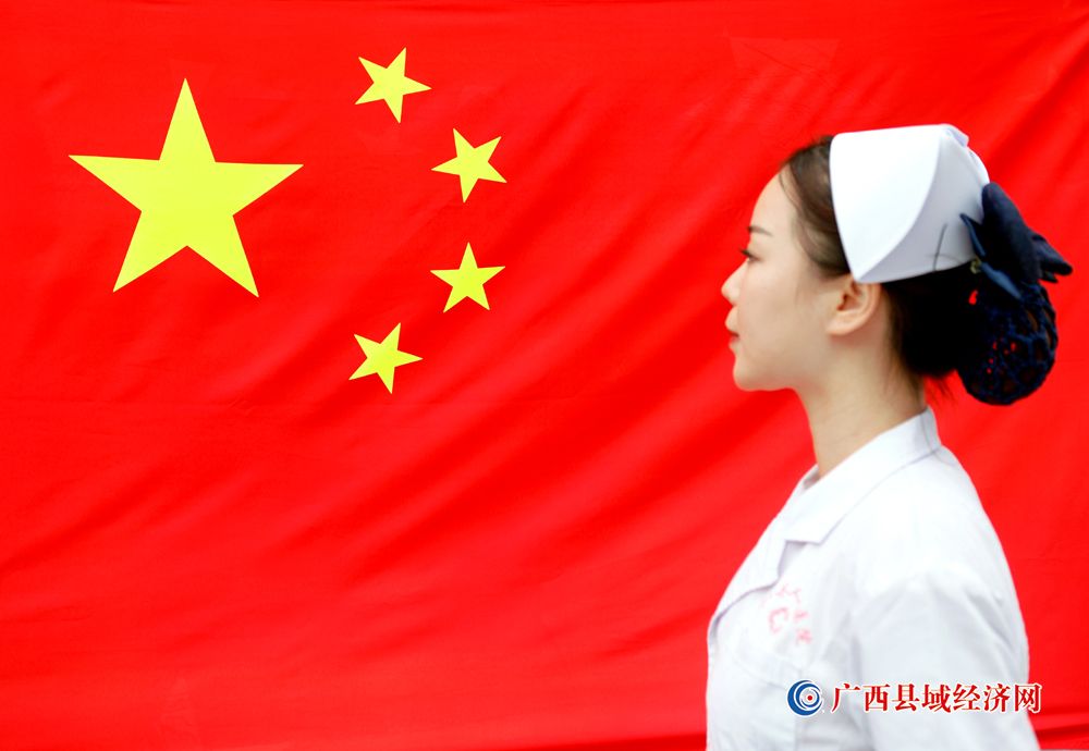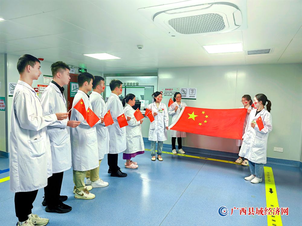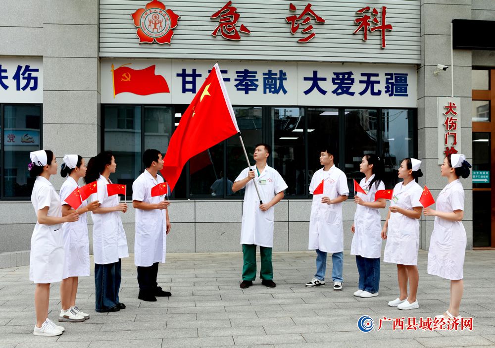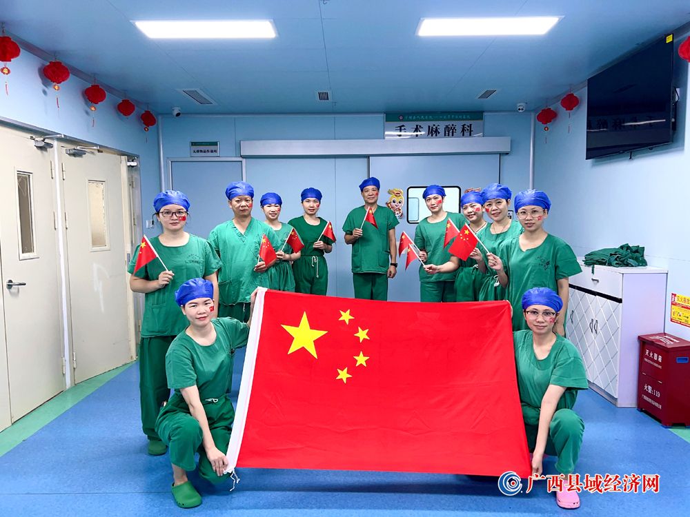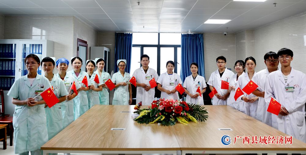 图九、宁明县人民医院医护人员积极参加“我和国旗合个影”主题活动庆祝祖国74周年华诞。(农艳蓉 摄)