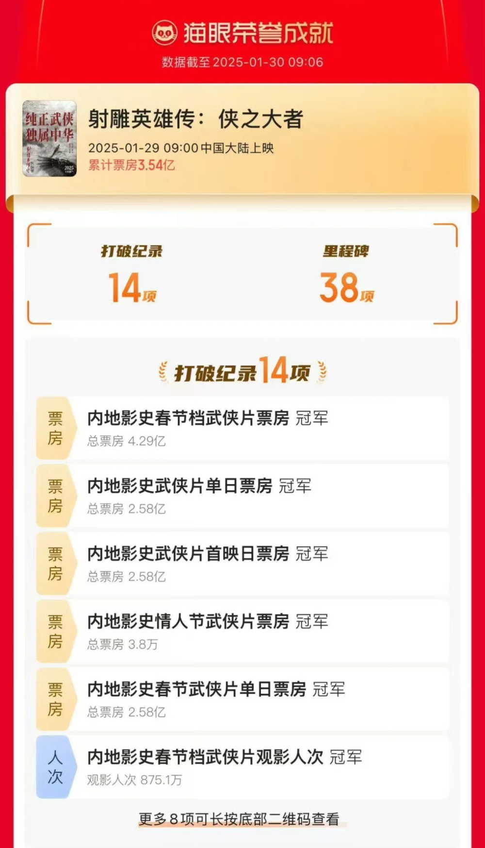 2025年春节电影市场火爆来袭,各大贺岁电影破中国影史记录。其中,影片《射雕英雄传侠之大者》上映首日票房2.58亿,打破14项纪录,获得38项里程碑成就。上映3天,票房突破5亿。由于目前《射雕》只在国内上映,春节期间,还吸引了东盟友人来南宁一睹为快。