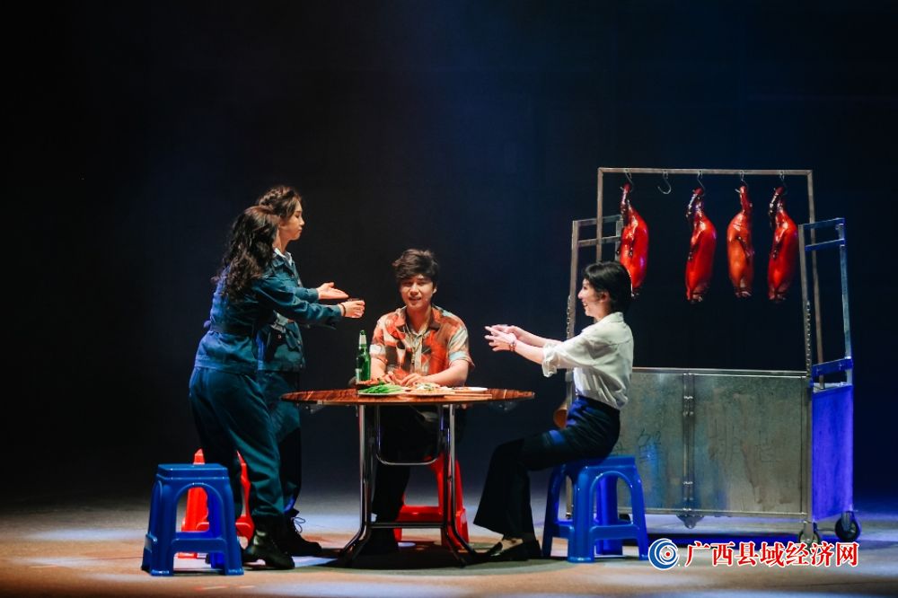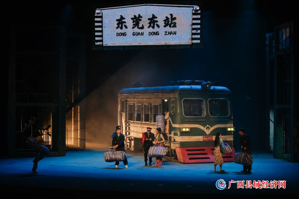 《东莞东》以20世纪90年代青年女孩王雪英南下东莞打工为主线,讲述了她与同伴们在金虎手袋厂的奋斗历程。剧中融入的岭南特色场景——如雷雨中的东莞东站、市井烟火中的烧鹅摊,以及工厂流水线的真实还原,让许多广西观众倍感亲切。而2025年巡演提升版的特别之处,在于主创团队在尾声部分加入了黄家驹经典粤语歌曲《海阔天空》的旋律改编,这一设计不仅成为全剧情感的高潮,更以“天空海阔你与我,可会变”的歌词,串联起两代奋斗者的精神共鸣。