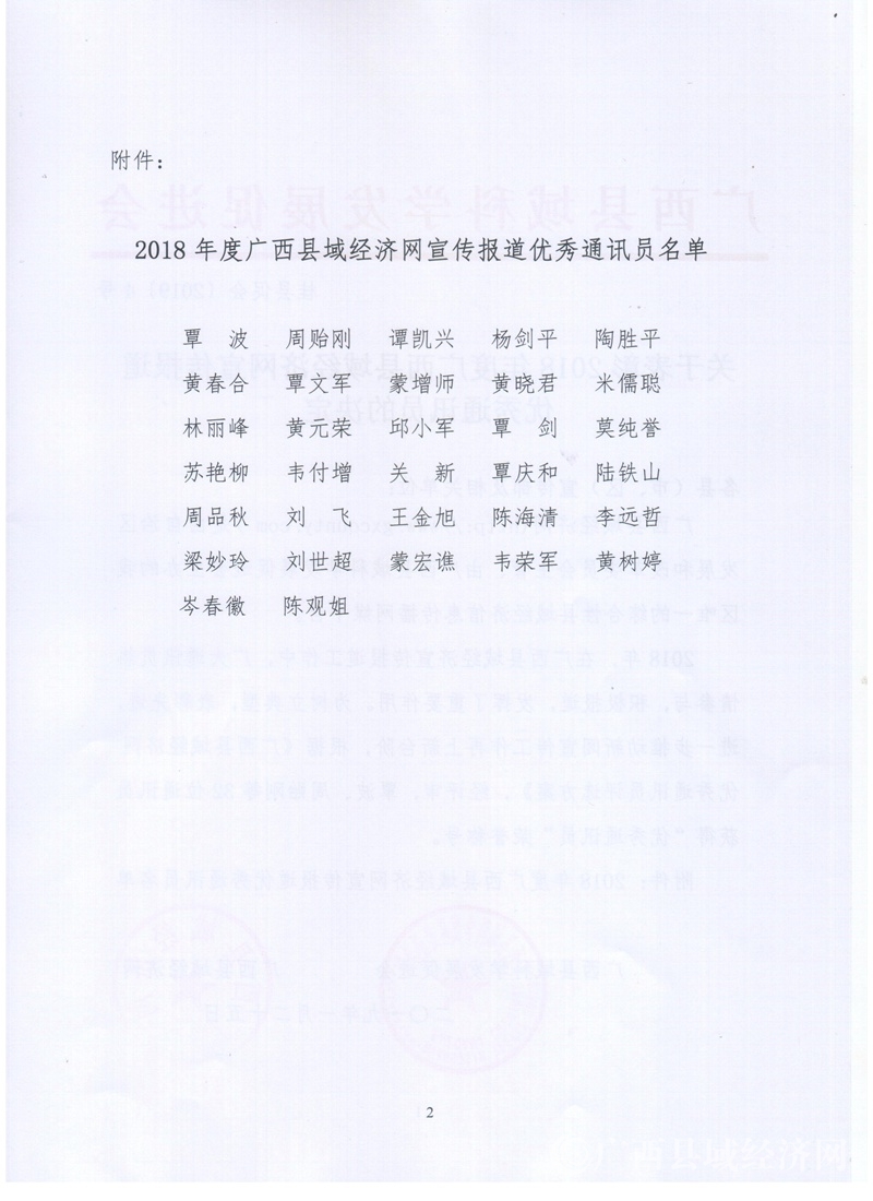 2018年度广西县域经济网宣传报道优秀通讯员名单