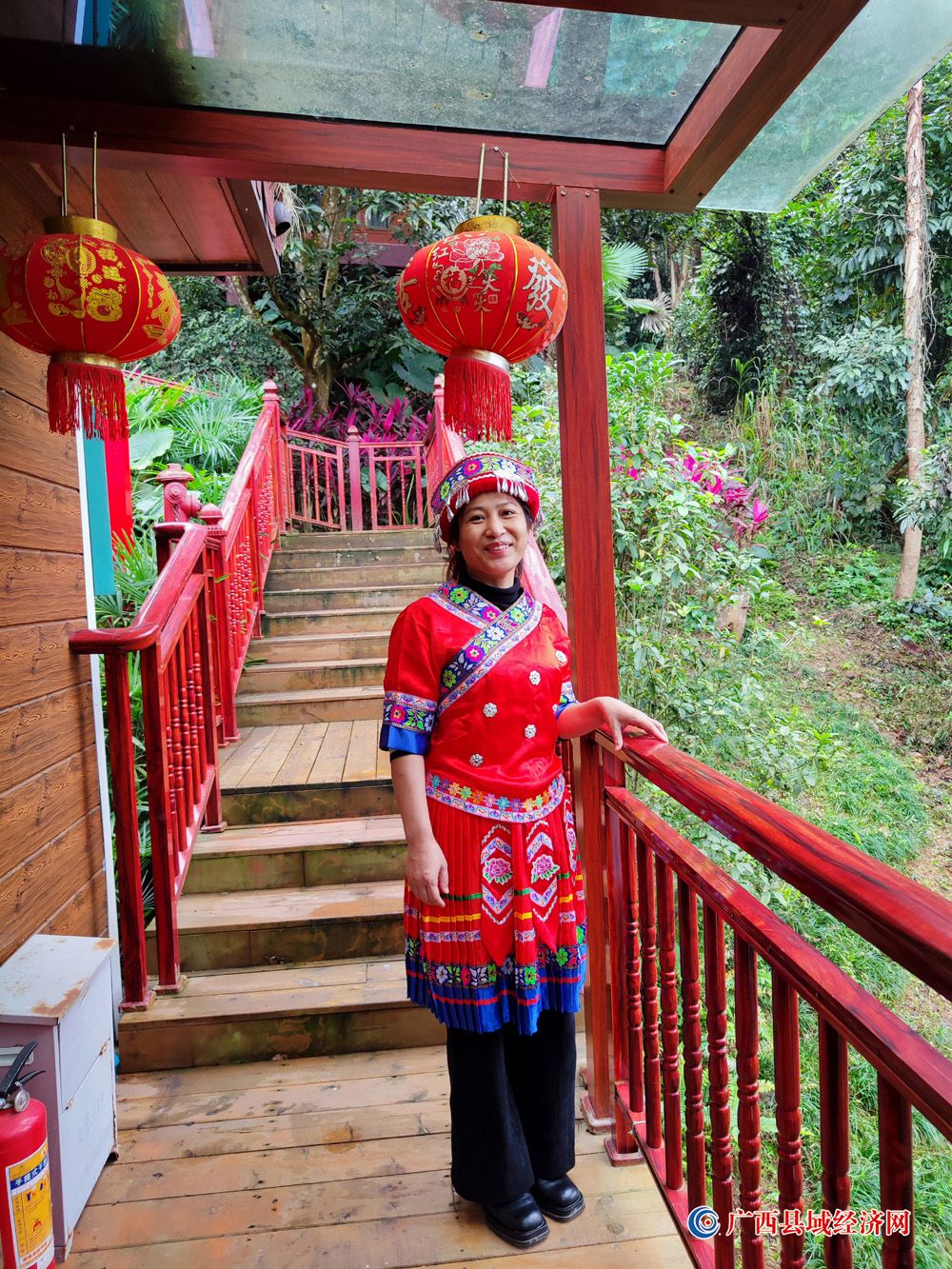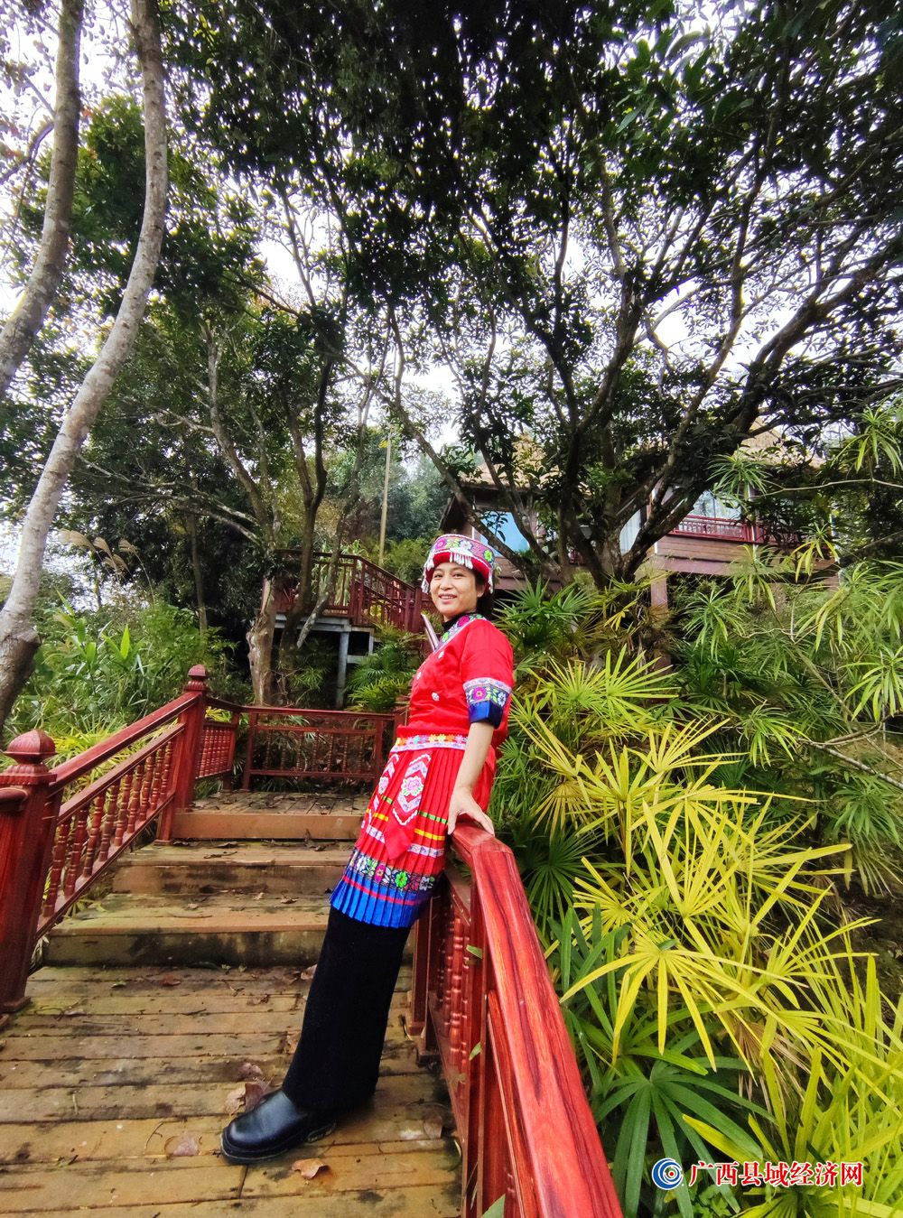 图三、1月2日,一名游客身穿民族服装在国家aaaa级景区——广西派阳山森林公园东盟别墅区拍照留念。(周贻刚 摄)