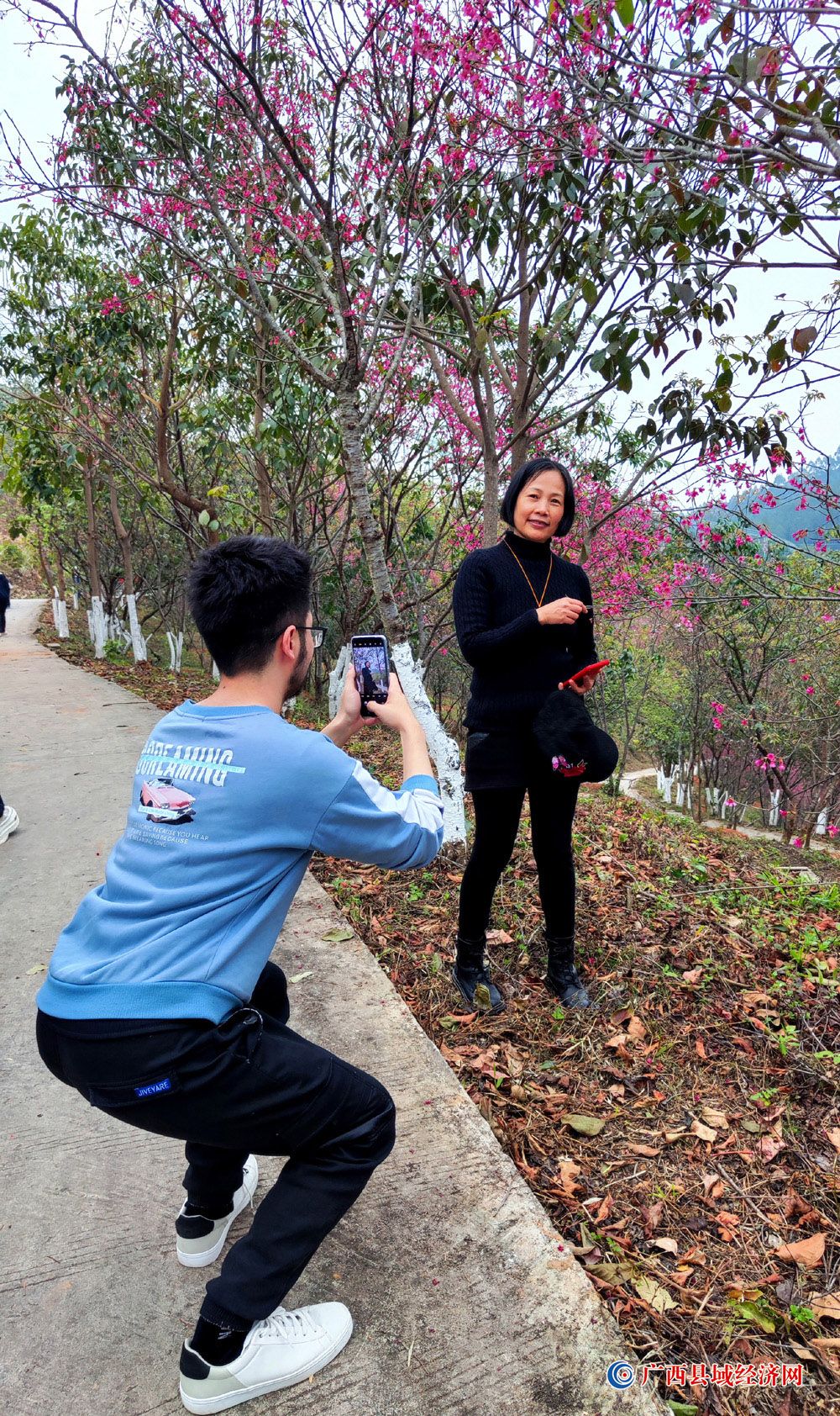 图二十一、1月22日,游客在国家aaaa级景区——广西派阳山森林公园“樱花园”景点拍照留念。(周贻刚 摄)