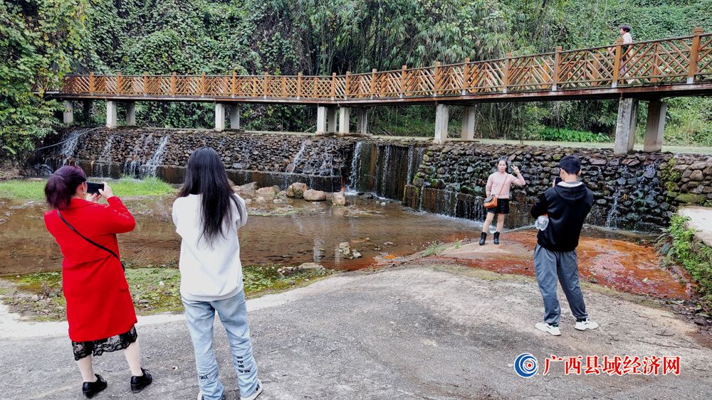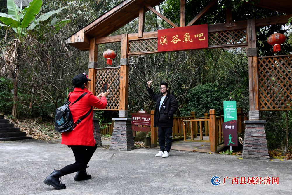 图二、1月22日,游客在国家aaaa级景区——广西派阳山森林公园“溪谷氧吧”景点拍照留念。(周贻刚 摄)