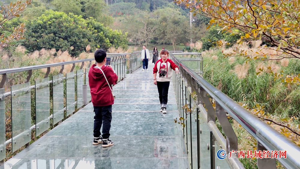 图十、1月22日,游客在国家aaaa级景区——广西派阳山森林公园“梦幻玻璃桥”景点拍照留念。(周贻刚 摄)