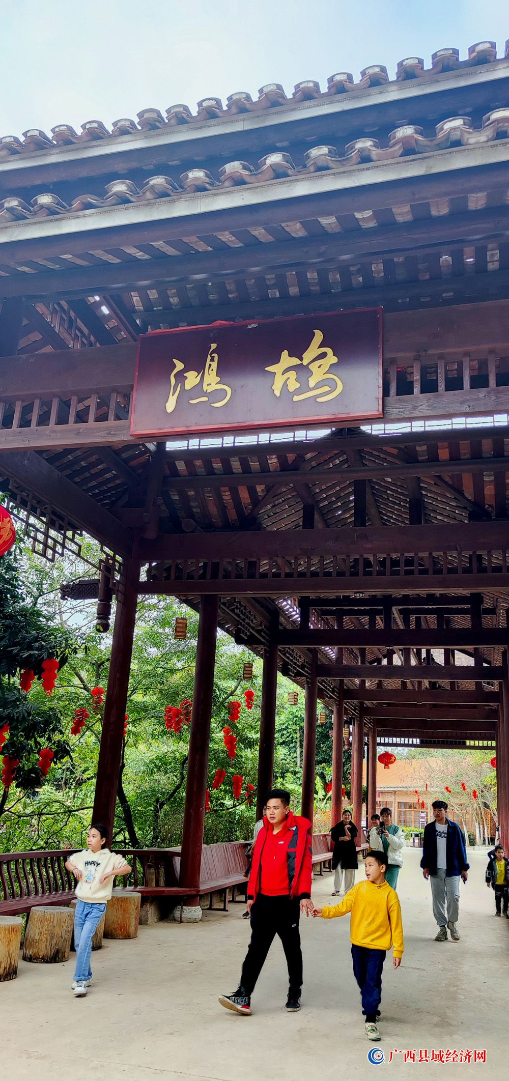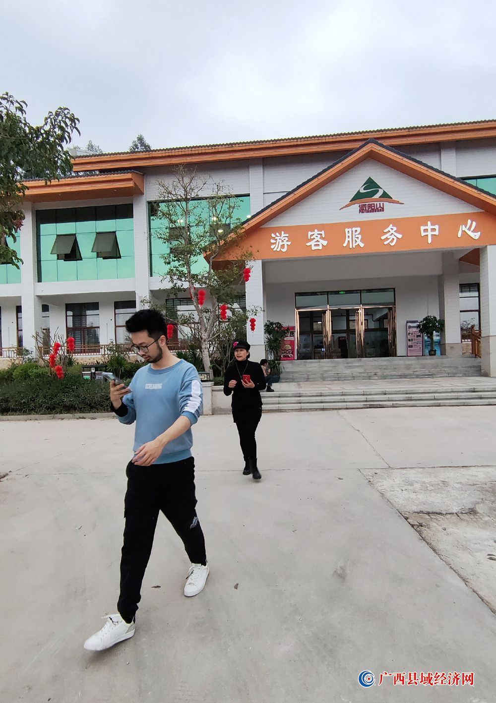 图十三、1月22日,游客从国家aaaa级景区——广西派阳山森林公园“游客服务中心”走出。(周贻刚 摄)