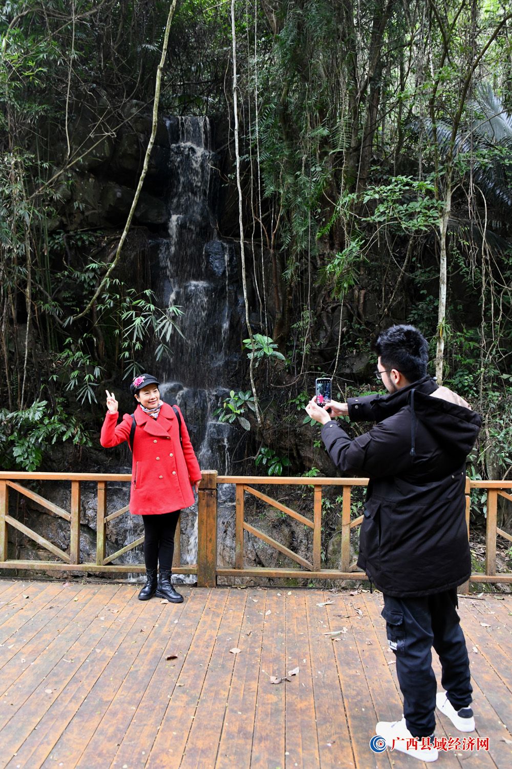 图四、1月22日,游客在国家aaaa级景区——广西派阳山森林公园“溪谷氧吧”景点拍照留念。(周贻刚 摄)