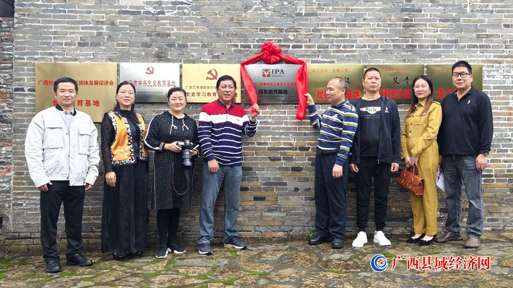 图一、5月11日,国际摄影协会(ipa)广西分会主席赵成艺(左四)与广西星途文化旅游集团有限公司董事长黄裕昌(右四)共同为国际摄影协会(ipa)摄影创作基地牌匾揭幕。(何春琼 摄)