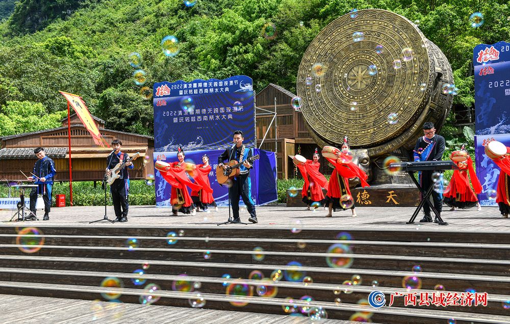当天,来自桂西南大德天边关旅游目的地拥有水资源的花山岩画、浩坤湖、通灵大峡谷、龙宫仙境、明仕田园、古龙山大峡谷、鹅泉、渠洋湖、安平仙河、老木棉景区等代表,参与了清凉桂西南的现场祈福仪式和桂西南暑期新项目产品发布。活动现场通过游客、嘉宾、媒体等进行跑马互动抽奖、壮乡民俗歌舞、现代青春热舞等环节,吸引了诸多区内外游客围观和参与,德天跨国瀑布景区本土乐队木棉组合激情献唱更是引爆全场,拉开观瀑节活动热情奔放的序幕。