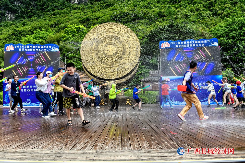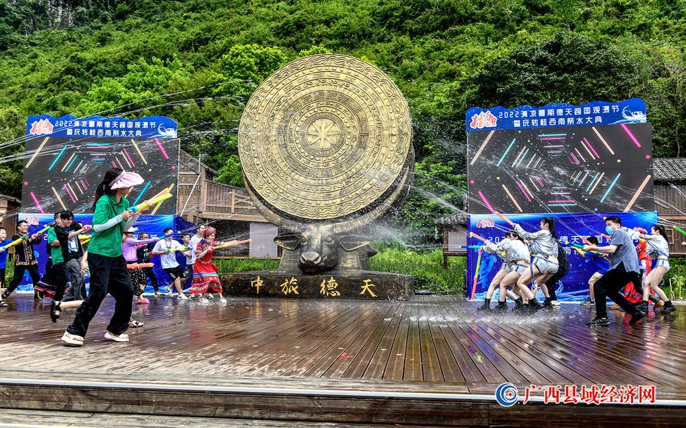 图八、在“2022年清凉暑期德天跨国观瀑节暨玩转桂西南祭水大典”上进行的水枪大战互动。(赵成艺 摄)