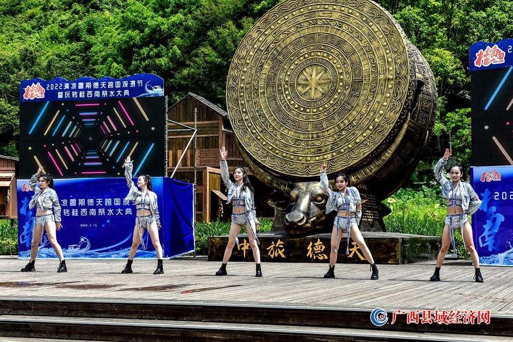 图七、在“2022年清凉暑期德天跨国观瀑节暨玩转桂西南祭水大典”上表演的现代青春热舞。(赵成艺 摄)