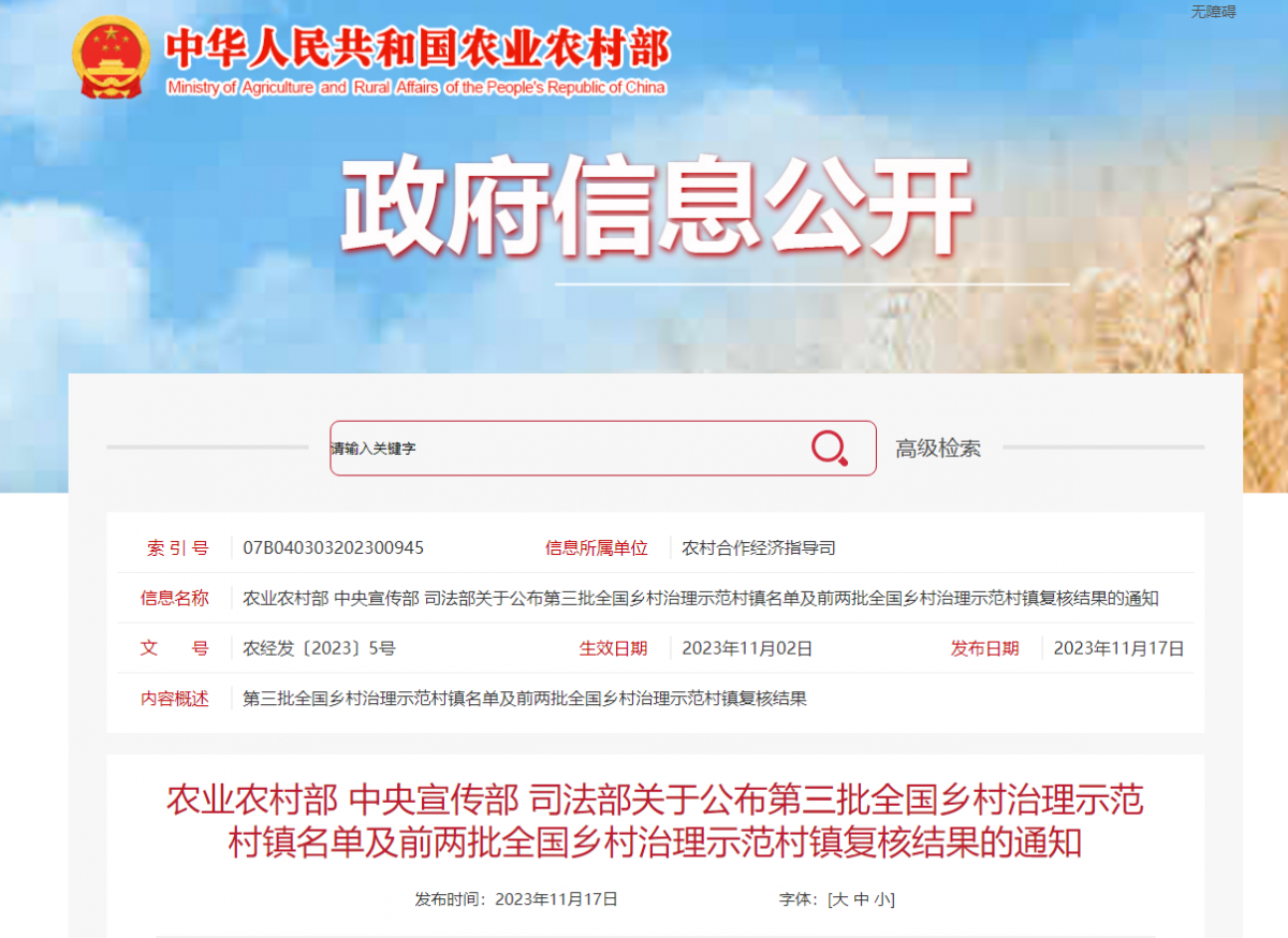 第三批全国乡村治理示范乡镇