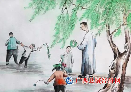 柳为寒食节象征之物,原为怀念介子推追求政治清明之意。早在南北朝《荆楚岁时记》就有“江淮间寒食日家家折柳插门”的记载,安徽、苏州等地还盛行戴芥花,佩麦叶来代替柳枝。据各地史籍记载:“插柳于坟”、“折柳枝标于户”、“插于檐插柳寝灶间”、“亦戴之头或系衣带”、“瓶贮献于佛神”、“门皆插柳”,故民间有“清明(寒食)不戴柳,红颜成白首”之说。