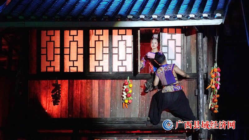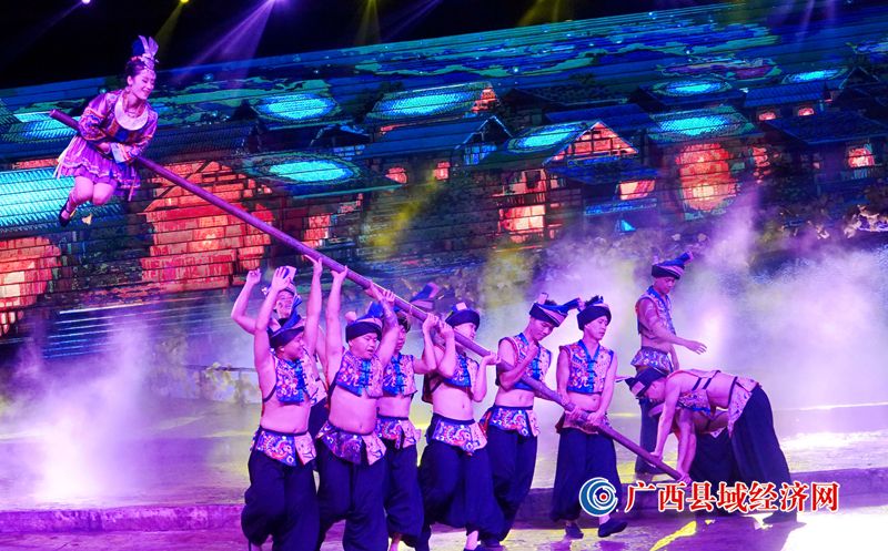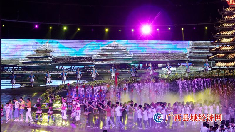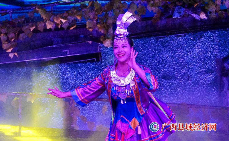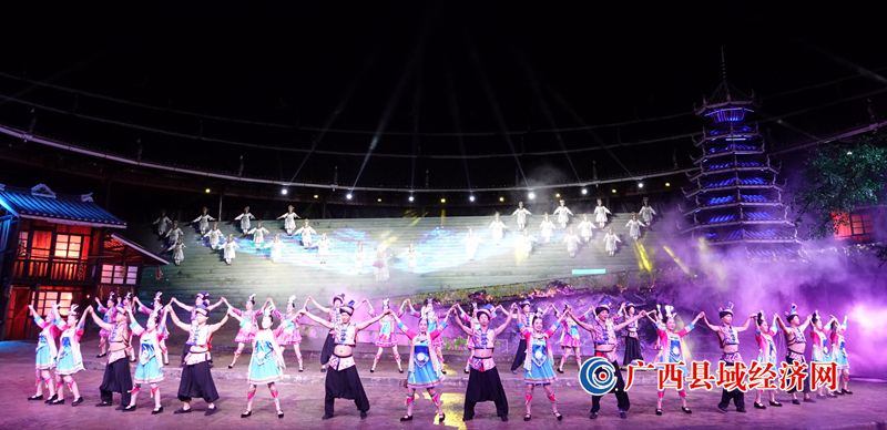 9月18日晚,广西壮族自治区三江县古宜镇“侗乡鸟巢”内座无虚席,来自北京、湖南、重庆、甘肃、海南等地的数千名游客一起观看富有民族特色的侗族大型风情音画实景演出《坐妹·三江》。