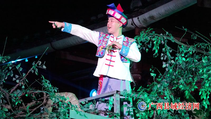 9月18日晚,广西三江县《坐妹·三江》实景演出最热闹的观众互动环节。