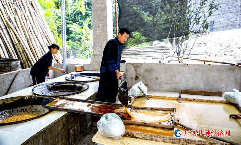 世界文化遗产地——广西宁明花山岩画脚下的城中镇耀达村灰窑屯群众刚生产出来的手工红糖。伍明 摄