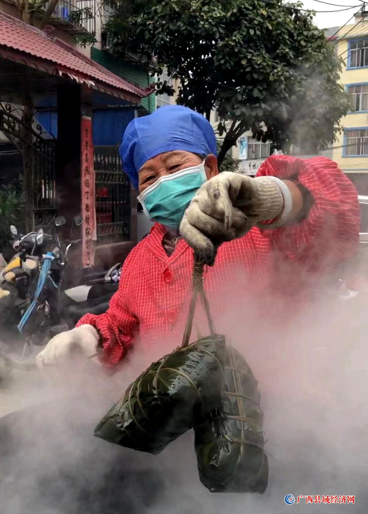 图三、1月4日,宁明县城中镇福仁西街居民群众将煮熟的年粽从锅里取出迎接新年的到来。 (伍明 摄)